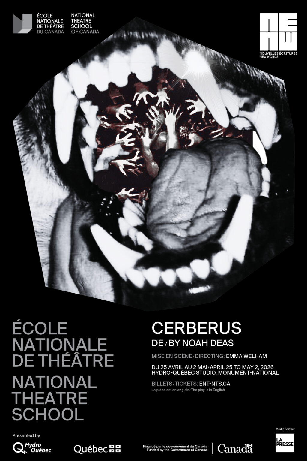 The New Words Festival is the culminating project of the graduating class of the National Theatre School of Canada’s English Section. Two brand-new, never-before-produced plays run in repertory during the students’ final week at the School, just days before graduation. Written by students in NTS’s Playwriting Program, and realized by students in the ActingProduction Design and Technical Arts, and Set and Costume Design programs, the plays produced at the New Words Festival mark the end of the students’ formal training and the beginning of their professional careers. A showcase for exciting new talent, New Words is particularly poignant for the playwrights whose plays reach the public for the very first time during their tenure at NTS. Join us in celebrating these artists who will shape the future of Canadian theatre by taking in both exciting productions on offer this year!