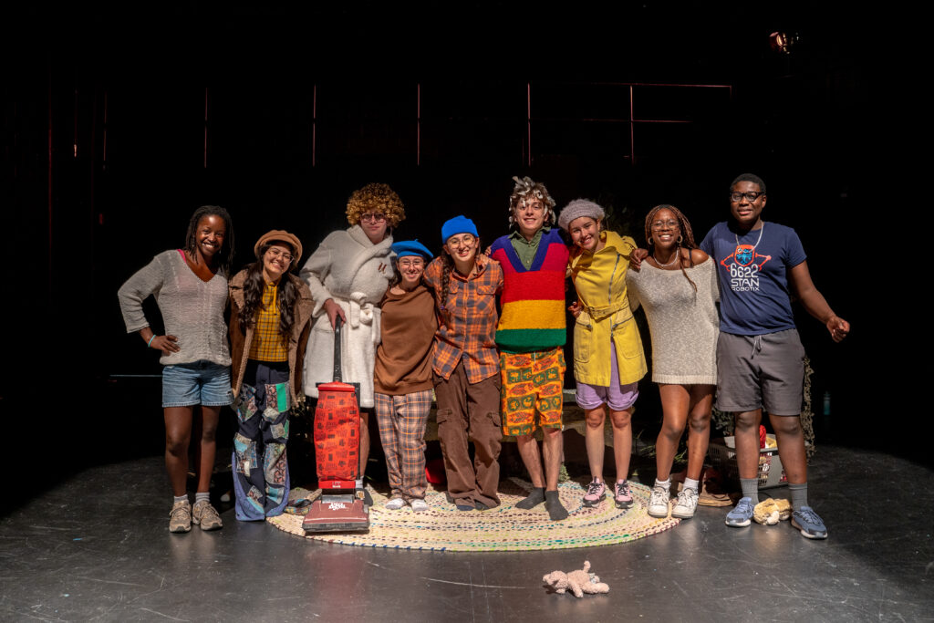 Des étudiant(e)s en Création et Production et en Interprétation, juste avant la représentation du spectacle Avant que les bêtes nous dévorent. Crédit : Maxime Côté