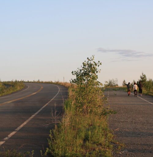 Ça fait 3 ans qu’Audrey et moi allons à Black Lake, chaque été. C’est devenu un rituel avec notre groupe d’amis. Marc-Antoine Nadeau, un de nos amis de la région, nous a initiés à ce territoire et cette petite communauté. Depuis, je ressens le besoin d’y retourner constamment et de faire découvrir ce lieu. J’y suis retourné plusieurs fois à travers les années. Parfois seul, parfois avec d’autres amis, et le constat est toujours le même. Le lieu dégage quelque chose, on me dit :« Il faut que t’écrives là-dessus, il y a quelques à faire avec ça » On sentait que le lieu dégageait quelque chose, on ne savait pas quoi, alors on s’est dit qu’on allait essayer de le découvrir dans l’écriture, dans le théâtre, dans la rencontre avec le réel, le territoire et la fiction, la poésie. Rapidement, nous avons réalisé que nous avions une réelle complicité d’écriture, mais aussi une inspiration commune. Les mots sont arrivés naturellement et l’histoire a commencé à prendre forme. Ça parle du deuil, du sacré qui se cache dans le quotidien, de l’amitié profonde. Toute la complexité humaine rassemblée au fond d’un cratère minier. Nous avons commencé par écrire sans réfléchir, en nous laissant porter par le lieu, pour ensuite réaliser que nous avions envie d’aller au-delà d’un simple texte, et de monter une production qui viendrait de la communauté de nos deux écoles.